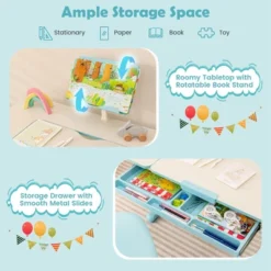 Costway Height-Adjustable Kids Desk Children Study Table With Tilt Desktop & Book Stand Blue/Pink