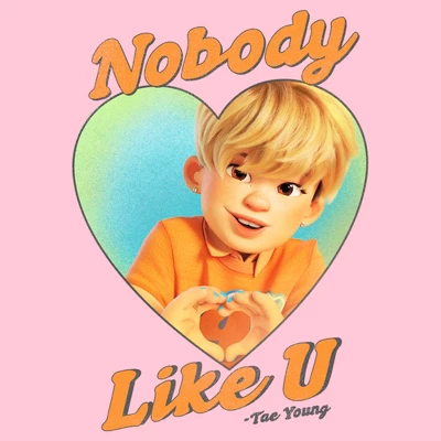 - Featuring a grpahic of Tae Young in a heart with “Nobody Like U’ printed around him