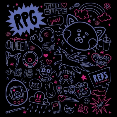 - Featuring a bunch of doodles of thinngs like pandas, Tamogotchi, rabbits, clouds, unicorns, and more!